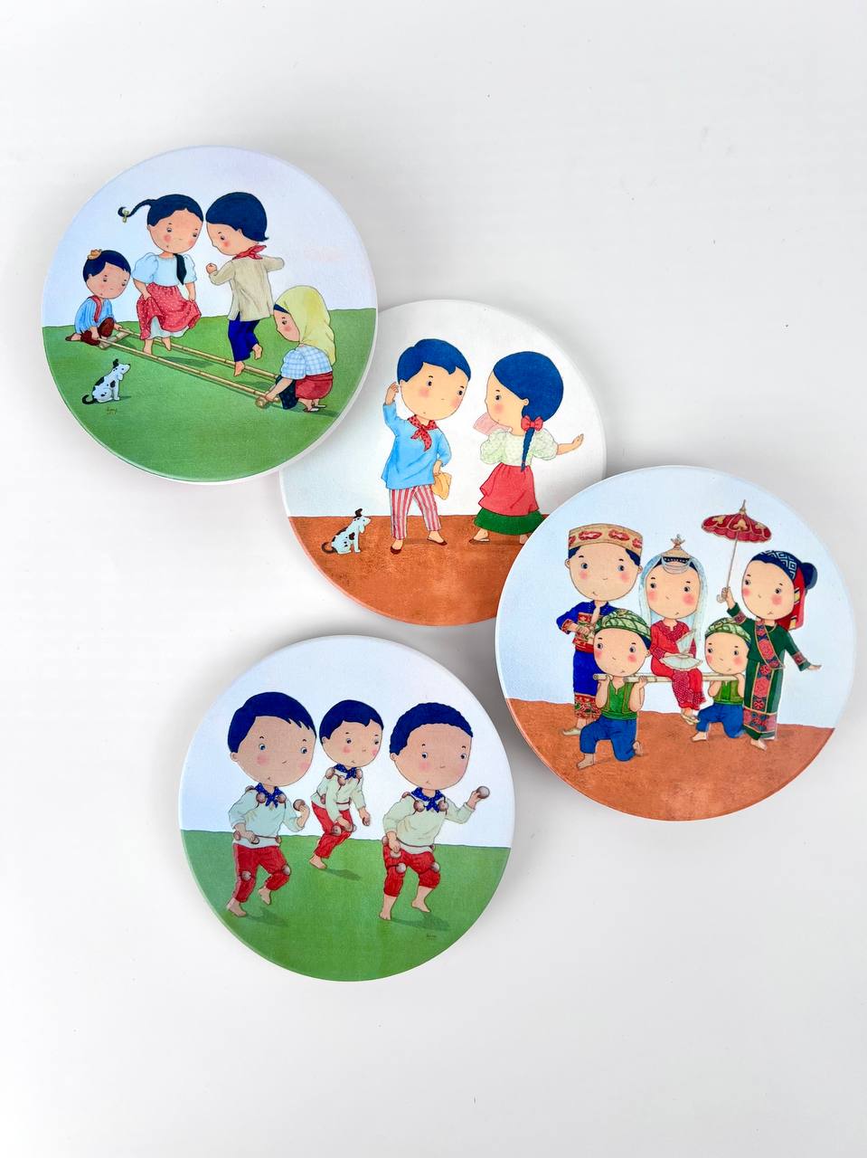 Inclusions: 4 pcs coaster (Designs : Singkil, Maglalatik, Tinikling and Carinosa)